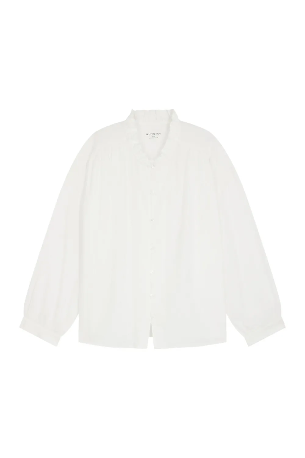 Rudy offre une silhouette bohème chic avec ses lignes travaillées de fronces et son col volanté. En popeline de coton douce et légère, cette blouse boutonnée esprit chemisier déclinée dans des coloris inédits demeure une valeur sûre. • Blouse en coton uni • Manches longues à poignets boutonnés • Col volanté avec patte de boutonnage • Détails froncés aux épaules • Coloris Écru : un blanc écru hivernal • Modèle dessiné à Paris par notre styliste • Longueur : 64 cm pour une taille 1 • Sofia mesure 1m70 et porte une taille 1