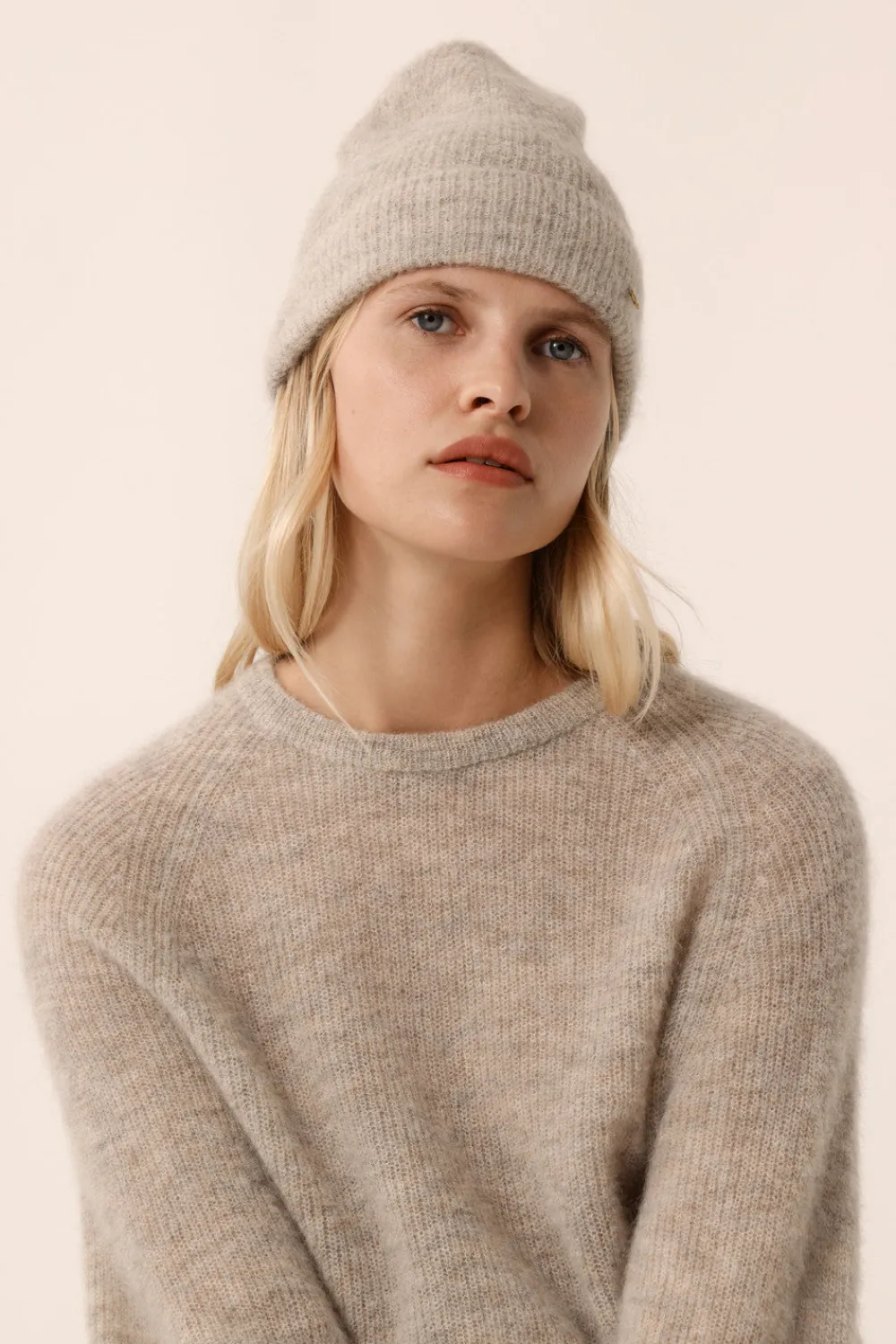 Réalisé dans un fil emblématique Des Petits Hauts, vous allez adorer la douceur et les coloris du bonnet Calin. Portez-le avec une maxi écharpe et une doudoune en sherpa pour un look contemporain. • Bonnet côtelé à large revers • Maille côte perlée • Bonnet réalisé en fil italien premium du groupe « Light » en Super Kid Mohair d’Afrique du Sud certifié RMS et Baby Alpaga du Pérou, donnant un aspect gonflant et garantissant légèreté et douceur. Fil emblématique Des Petits Hauts. • Coloris Granite : un gris chiné • Modèle dessiné à Paris par notre styliste • Largeur : 21 cm – Hauteur : 21 cm • Conseil style : portez-le avec l’écharpe Canela avec le manteau long Yvie
