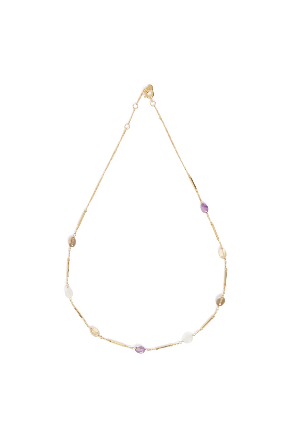 Ayant le pouvoir de sublimer un look, le collier Meysson séduit pour son élégance et sa finesse. Orné de perles, pierres véritables et maillons rectangulaires, portez ce bijou bohème doré à l’or fin seul ou en accumulation. • Collier mailles gourmette et rectangle • Détails perles ovales et pierres véritables • Collier doré à l’or fin • Finition brillante • Fermoir rond • Signature cœur DPH x Feeka • Longueur ajustable jusqu’à 45 cm • Livré avec un pochon de rangement • Exclusivité DPH x Feeka