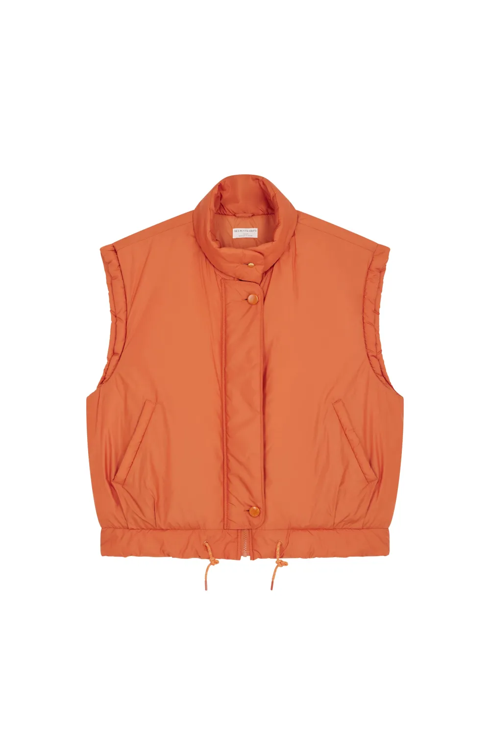 Plus urbaine et toujours aussi confortable, la doudoune sans manches Neletta prend la forme d’une veste de sport rembourrée pour un look athleisure mêlant les styles streetwear et gymwear à la perfection. Esprit 80’s avec ses lignes graphiques, ses épaules tombantes et sa taille resserrable structurent la silhouette. • Veste sans manches au rembourrage léger • Coupe droite resserrable à la taille • Col montant à bouton ton sur ton • Épaules tombantes • Ouverture par patte zippée • Coloris Lave : un orange vif • Modèle dessiné à Paris par notre styliste • Longueur : 65,5 cm pour une taille 1 • Iolanta mesure 1m71 et porte la taille 1 • Conseil look : portez-la sur un pull avec un jean et une casquette pour un look contemporain • Conseil taille : Ce modèle a été imaginé pour un porté oversize. Nous vous recommandons de prendre votre taille habituelle pour avoir le même porté que notre mannequin, si vous souhaitez un look plus ajusté, prenez la taille inférieure.