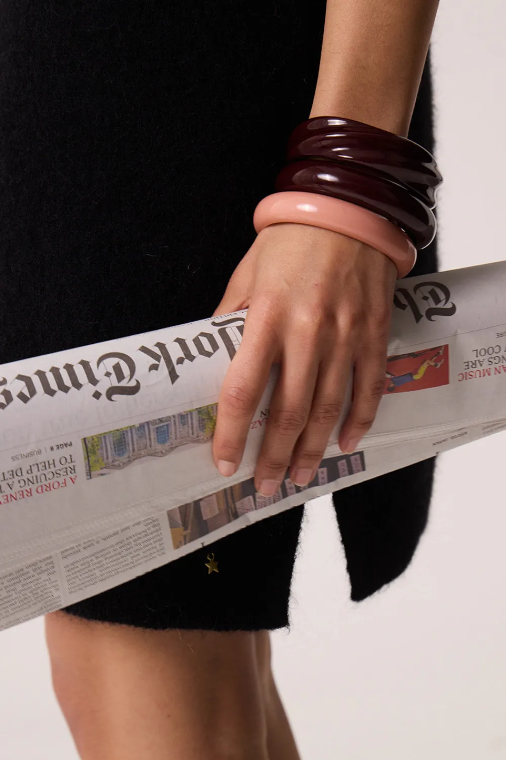 Tendance à suivre de très près, les bijoux vintage continuent leur ascension mode cette saison avec ce set de 2 joncs Manael en acétate. Bombé pour l’un et gravé dans l’esprit d’une vague pour l’autre, ils se poseront joliment à votre poignet. • Joncs en acétate bombé et gravé • Finition brillante • Ces bracelets s’enfilent et existent en taille unique • Coloris Ours : un marron foncé • Ø 6,5 cm • Livré avec un pochon de rangement • Exclusivité DPH x Feeka