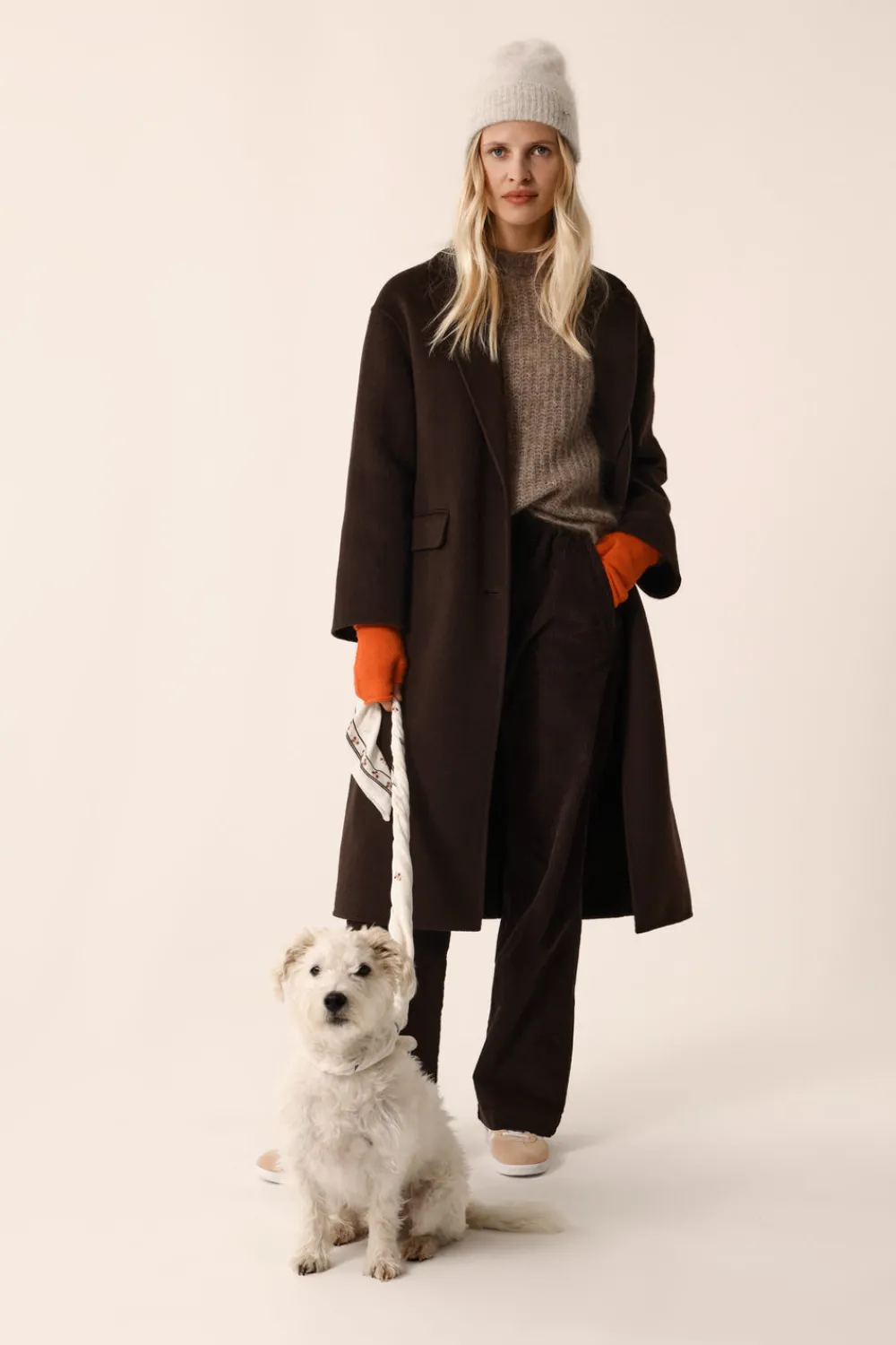 Exit le classique manteau noir, cet automne on se tourne vers des coloris marron ou rose avec le manteau long Neron. En laine douce et enveloppante, sa coupe chic et structurée d’un col tailleur traversera les années sans passer de mode.• Manteau long en drap de laine• Manches longues• Emmanchures tombantes• Col tailleur• Poches passepoilées à rabat• Ouverture boutonnée• Modèle non doublé• Coloris Ours : un marron foncé• Modèle dessiné à Paris par notre styliste• Longueur : 113,5 cm pour une taille 1• Jolien mesure 1m76 et porte une taille 1• Conseil style : portez-le ouvert sur un pull col montant et une jupe longue léopard pour un look ultra contemporain