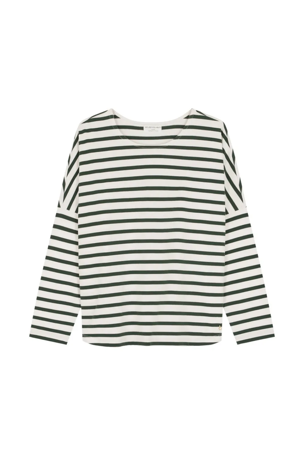 Incontournable Des Petits Hauts, notre iconique marinière Filly confirme séduit saison après saison. Déclinée dans des coloris coordonnés à la collection et moddernisée par une coupe oversize, elle est accessoirisée d’une jolie broche.• Marinière oversize manches longues• Encolure ronde dégagée• Emmanchures décalées• Base fendue• Broche incluse différente en fonction des coloris• Coton Oeko-Tex epais et respirant • Coloris Écru et Épicéa : un blanc écru et un vert foncé• Modèle dessiné à Paris par notre styliste• Longueur : 60 cm pour une taille 1• Josie mesure 1m77 et porte une taille 1• Conseil style : portez-la avec le jean mum louisette 1 et la veste en jean Loubia pour un look décontracté