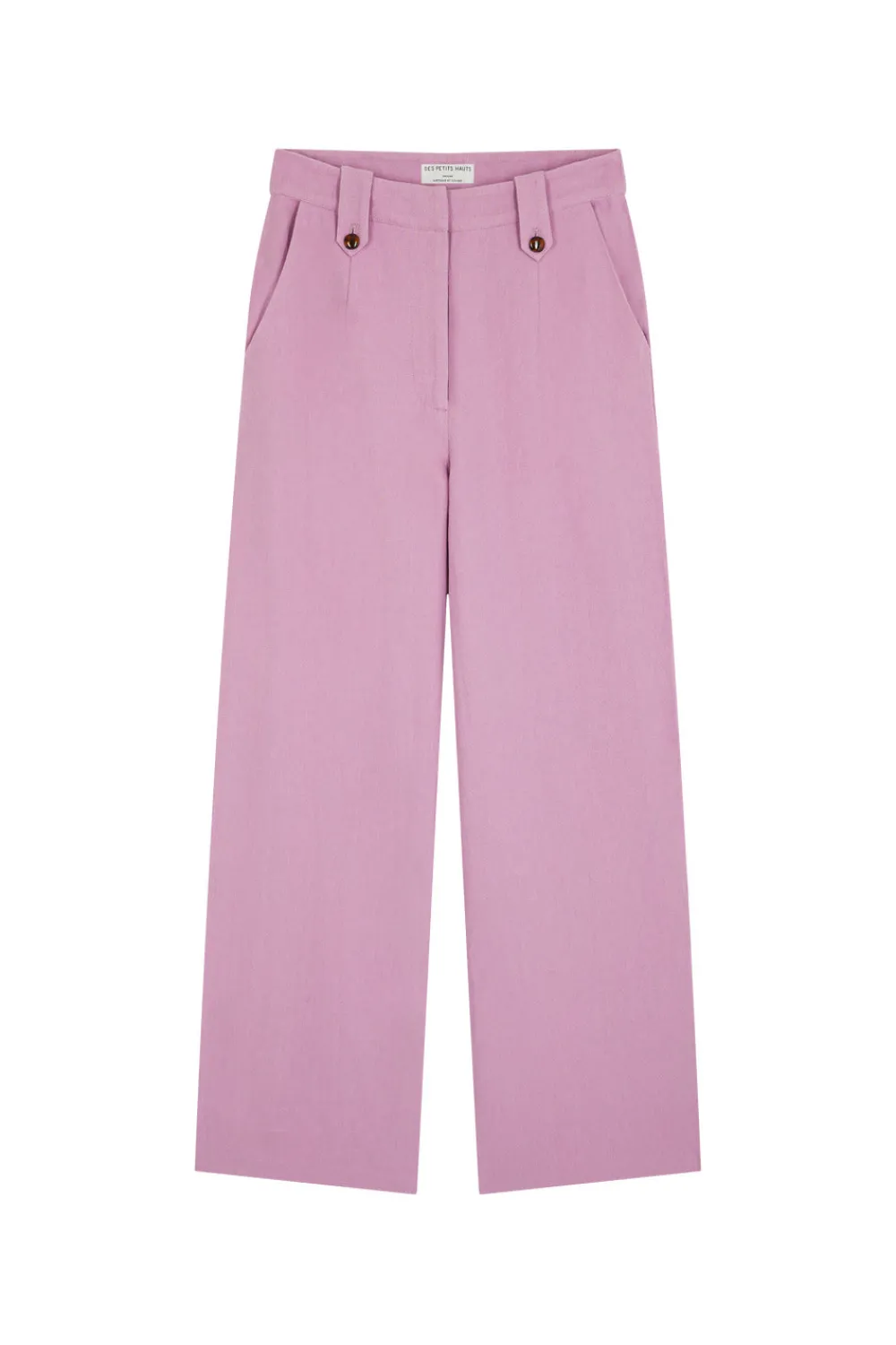 Must have du vestiaire automne/hiver, le pantalon tailleur large Elito sera de tous les looks cette saison. Coupe droite et parfaitement taillé, vous ne résisterez pas à son coloris lumineux et son tombé parfait. Portez-le avec une blouse pour le quotidien et en total look avec le gilet sans manches coordonné pour un évènement.• Pantalon tailleur droit à pinces et jambes larges • Poches italiennes devant et fausses poches passepoilées dos• Ouverture zip et bouton• Pantalon habillé en coton et lin• Coloris Blossom : un rose mauve• Modèle dessiné à Paris par notre styliste• Longueur : 106 cm pour une taille 1• Iolanta mesure 1m71 et porte une taille 36 •Conseil taille : Si vous hésitez entre deux tailles, choisissez la taille au-dessus. Sinon, choisissez votre taille habituelle.