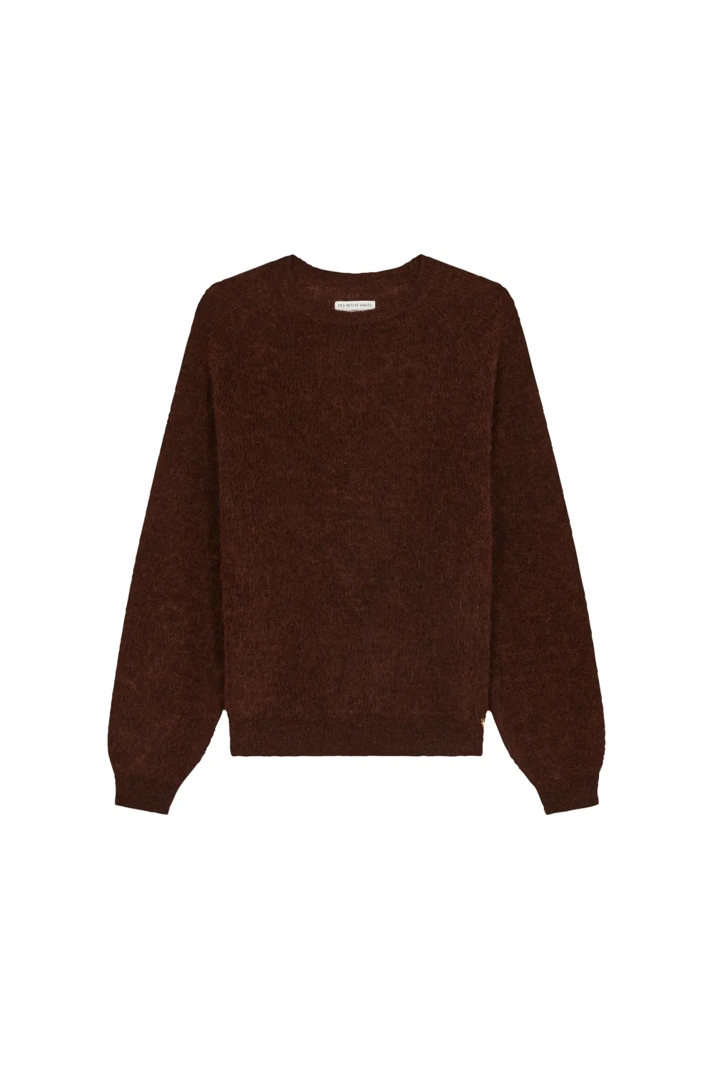 Volume oversize et coupe raccourcie, ce pull col rond Carlos fonctionnera aussi bien avec une tenue chic ou plus décontractée. Doux et léger sur la peau grâce à sa maille fine en super kid mohair et baby alpaga, adoptez vite ce modèle tout-terrain. • Pull large coupe courte • Col rond • Emmanchures raglan • Finitions en bord-côte • Pull réalisé en fil italien premium du groupe « Light » en Super Kid Mohair d’Afrique du Sud certifié RMS et Baby Alpaga du Pérou, donnant un aspect gonflant et garantissant légèreté et douceur. Fil emblématique Des Petits Hauts. • Coloris Ours : un marron foncé • Modèle dessiné à Paris par notre styliste • Longueur : 58 cm pour une taille 1 • Alessandra mesure 1m74 et porte une taille 1 • Conseil style : portez-le rentré dans le jean Lulu avec les mocassins Phany