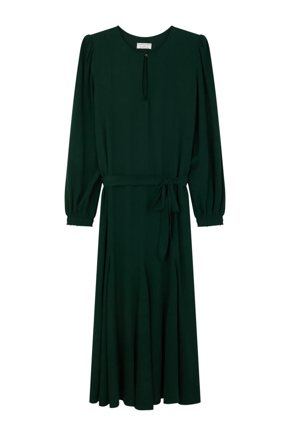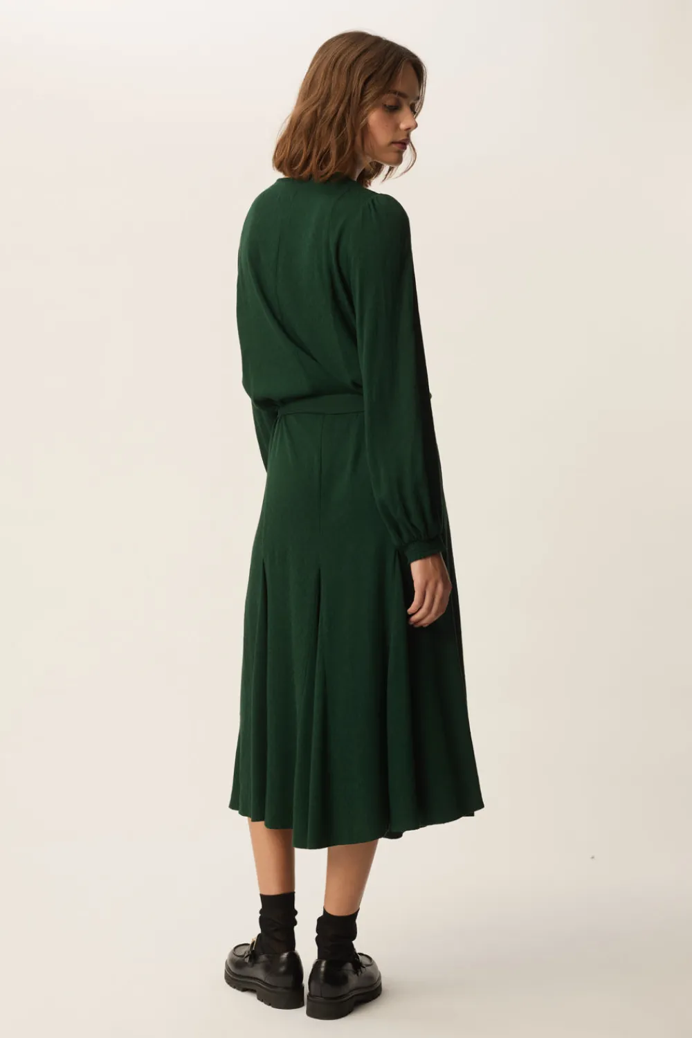 Les coupes maximalistes dessinent les contours des pièces à porter cette saison. Rétro chic et graphique avec son bas de jupe godet, manches longues et encolure dégagée structurent la robe longue Rafalia en viscose fluide à porter de jour comme de nuit. • Robe longue à base godet • Manches longues à poignet smocké • Encolure ronde à bouton goutte • Jupe godet pour un joli volume • Lien à nouer à la taille • Robe d’hiver chic en viscose très facile à entretenir et se froissant peu • Coloris Épicéa : un vert foncé • Modèle dessiné à Paris par notre styliste • Longueur : 121 cm pour une taille 1 • XXX mesure 1mXX et porte une taille 1 • Conseil style : portez-la avec les bottes Papricia et des bijoux dorés pour un look rétro chic