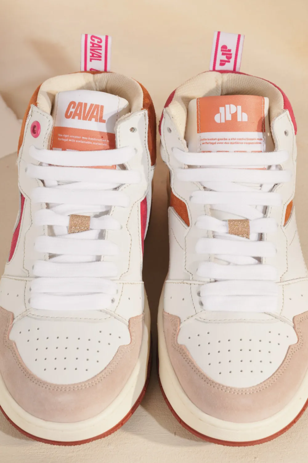 Cette saison encore, DPH signe une nouvelle paire de baskets en collaboration avec la marque de sneakers et vêtements écoresponsables Caval. Parfaites pour la ville, ces baskets blanches au look urbain se porteront aussi bien avec un pantalon qu’une jupe pour un look contemporain. Avec une asymétrie des coloris entre les deux pieds signe distinctif de la marque Caval, vous ne résisterez pas à leur style rétro sportswear. • Baskets blanches écoresponsables • Lacets en coton • Empiècements en cuir et suède contrastés posés en asymétrie • Surpiqûres en coton • Semelles extérieure en caoutchouc • Logos Caval et DPH sur les côtés • Dessinées à Paris par notre styliste • Fabriquées au Portugal • Tailles disponibles : 36-41 • Livrées avec un pochon de voyage • Conseil style : portez-les avec un jean large et des chaussettes dip dye