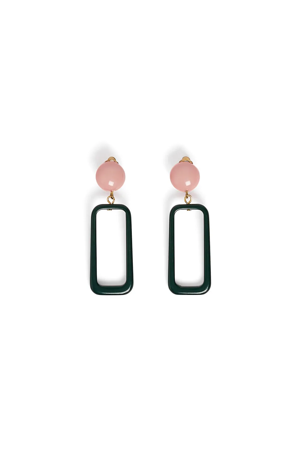 Encore plus graphiques et toujours aussi élégantes, les boucles d’oreilles en résine habilleront tous les visages cette saison. Composées d’une puce bombée et d’un pendant rectangulaire pour un look graphique, les boucles Melouan sont teintées aux couleurs de la collection DPH. • Boucles d’oreilles pendantes en résine • Puce ronde • Pendant rectangulaire ajouré • Finition brillante • Fermoir attache poussoir • Adaptées aux oreilles percées • Coloris Compote et Épicéa : un rose blush et un vert foncé • Longueur totale : 6,5 cm – Ø puce : 1,4cm| Livrées avec un pochon de rangement • Exclusivité DPH x Feeka