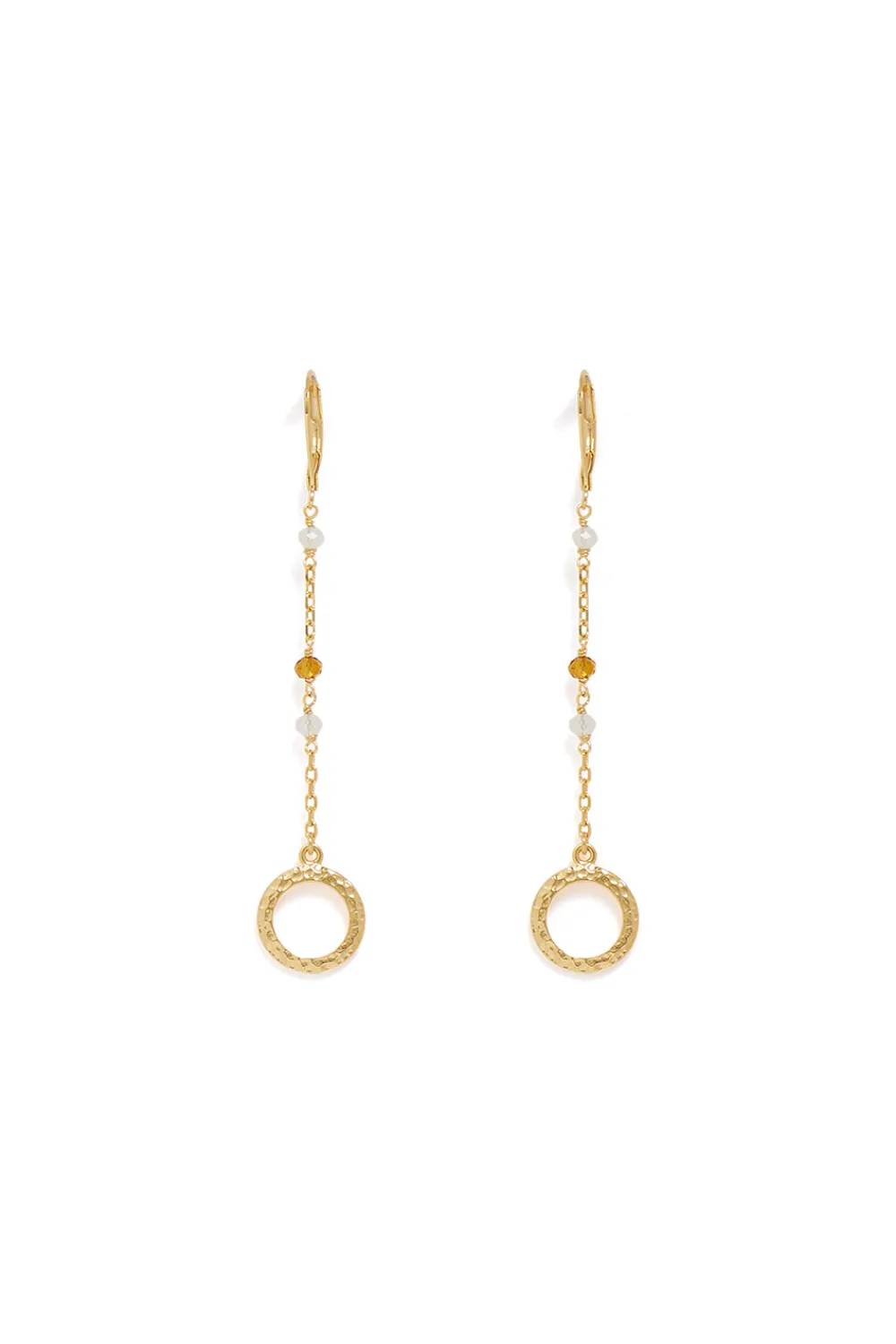 Longues et aériennes, les boucles d’oreilles pendantes Mercure sublimeront visages et tenues. Composées d’un pendant en chaîne orné de perles et d’un anneau martelé, portées cheveux relevés pour décupler leur style, elles attraperont les regards. • Boucles d’oreilles longues pendantes • Pendant chaîne maille de forçat à perles rondes et anneau martelé • Fermoir à cliquet • Adaptées aux oreilles percées • Coloris Or, Souffle et Érable : doré, un gris bleuté avec des touches de mauve et un jaune ocre • Longueur totale : 8 cm – Ø anneau : 1,3cm • Livrées avec un pochon de rangement • Exclusivité DPH x Feeka