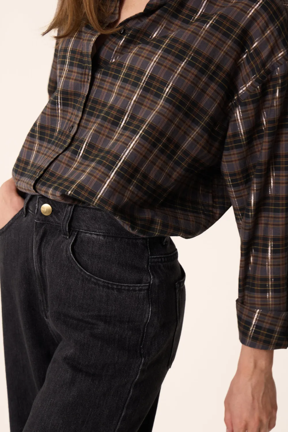 Coupe droite rallongée, motif tartan et détails lurex, chaque saison la chemise femme prend une nouvelle dimension. En coton souple et léger, parfaite pour l’entrée de saison, la chemise Volea promet de belles associations mode. • Chemise à carreaux • Manches longues • Col et poignets chemise • Ouverture boutonnée • Imprimé exclusif Des Petits Hauts carreaux « Sadani », des carreaux vert kaki et noir avec des rayures en lurex • Modèle dessiné à Paris par notre styliste • Longueur : 73 cm pour une taille 1 • Kryzia mesure 1m70 et porte une taille 1 • Conseil style : portez-la rentrée dans le jean Louela avec les bottes Papilla