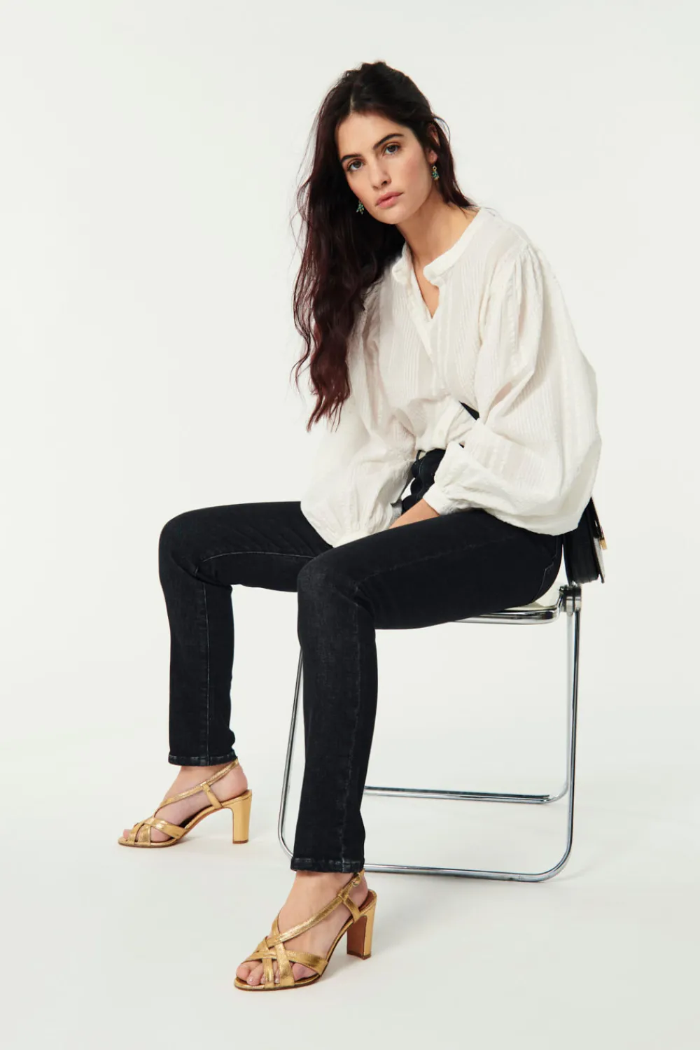 Intemporel et passe-partout, le classique jean slim confirme son statut d’indispensable. Décliné en denim foncé pour un look chic ou plus décontracté, il joue sur tous les terrains. • Jean slim collection éco-responsable • Longueur cheville • Taille mi-haute rehaussée au dos • Ouverture zippée et boutonnée • Passants devant et dos • Poches avec poches ticket devant • Poches plaquées forme diamant au dos • Eco délavage réalisé sans produit chimique avec des machines consommant très peu d’énergie • La ligne de denim est travaillée en collaboration avec une spécialiste du denim éco-conçu • Tissu et manufacture certifiés GOTS • Coloris Black Stone : un denim noir légèrement passé • Modèle dessiné à Paris par notre styliste • Longueur : 101 cm pour une taille 1 • Martina mesure 1m71 et porte une taille 25 • Conseil style : portez-le pull Apati et les derbies Lupin pour un look rétro urbain • Conseil taille : cet article taille normalement, choisissez votre taille habituelle