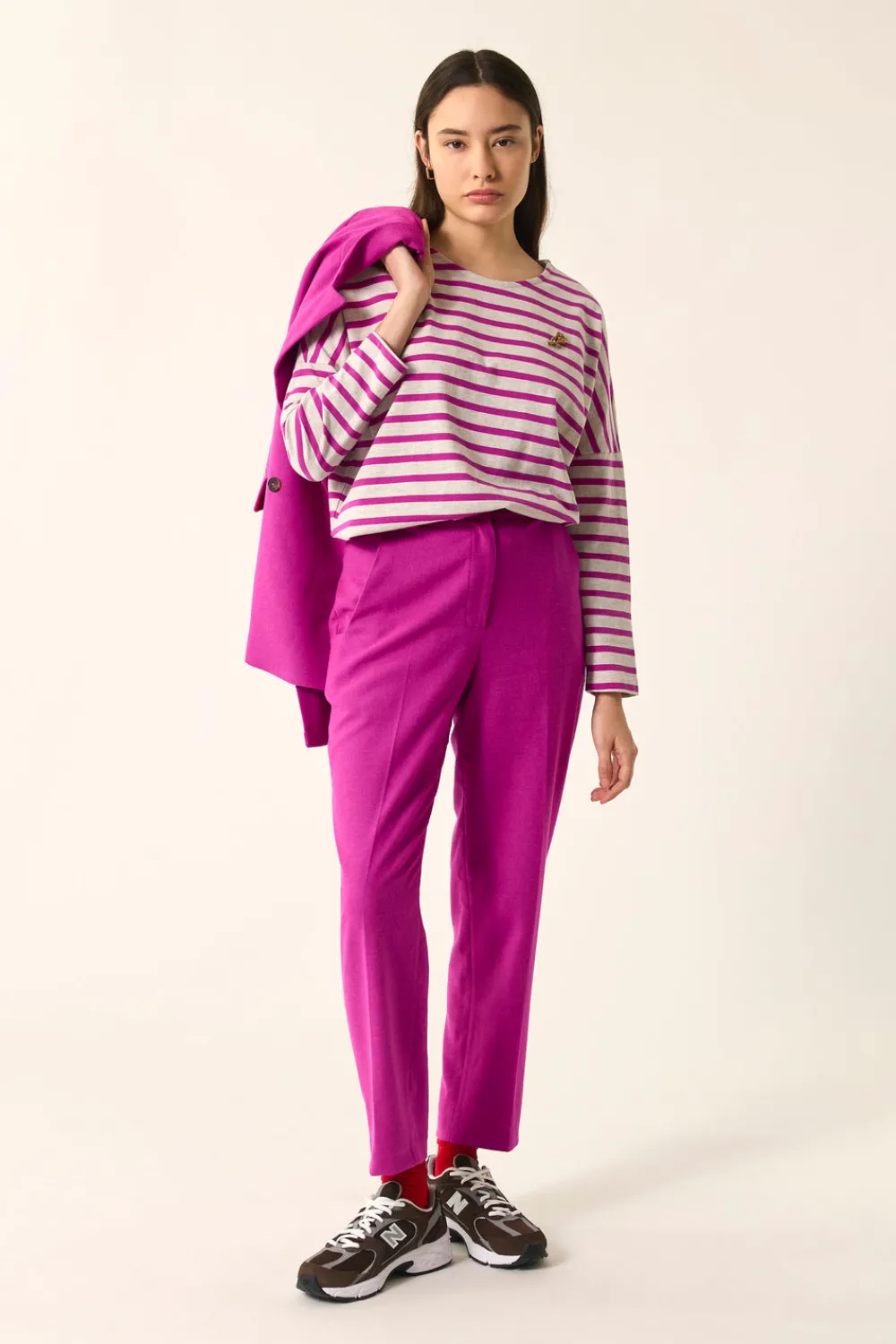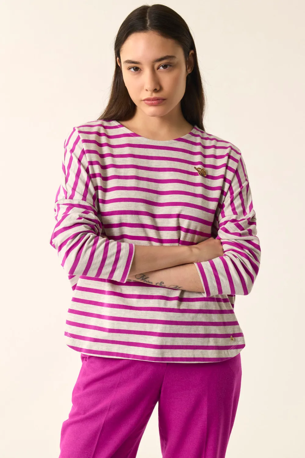 Incontournable Des Petits Hauts, notre iconique marinière Filly séduit saison après saison. Déclinée dans des coloris coordonnés à la collection et modernisée par une coupe oversize, elle est accessoirisée d’une jolie broche.• Marinière oversize manches longues• Encolure ronde dégagée• Emmanchures décalées• Base fendue• Broche incluse différente en fonction des coloris• Coton Oeko-Tex epais et respirant • Coloris Beige et Lupin : un beige neutre et un rose fuchsia• Modèle dessiné à Paris par notre styliste• Longueur : 60 cm pour une taille 1• Sofia mesure 1m70 et porte une taille 1• Conseil style : portez-la avec le jean mum louisette 1 et la veste en jean Loubia pour un look décontracté