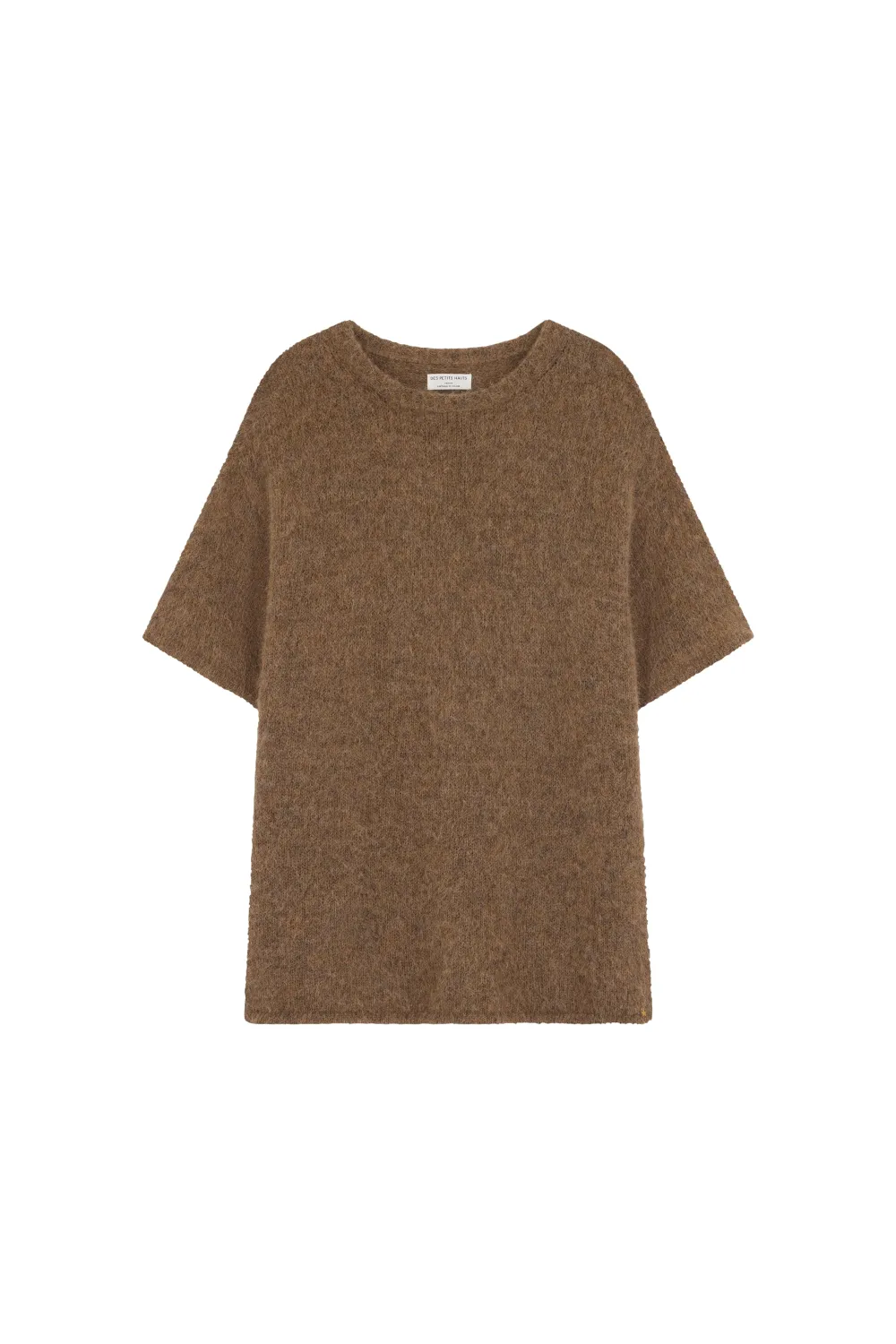 Anatole, c’est le pull oversize dans lequel vous aimerez vous lover cette saison. Manches larges et col rond, accordé à un pantalon uni ou à motif, sa longueur permettra de le détourner en une robe décontractée. • Pull oversize • Manches courtes oversize • Col rond • Pull réalisé dans un fil italien du groupe « Alpadoux » principalement composé d’Alpaga Superfine de qualité supérieur. Ce fil épais, duveteux, confortable est très chaud au porter. • Coloris Galet : un gris avec des touches de beige • Modèle dessiné à Paris par notre styliste • Fabriqué en Italie • Longueur : 75 cm pour une taille 1 • Malu mesure 1m75 et porte une taille 1 • Conseil style : portez-le pantalon en velours Sianou et les bottines Phanelie