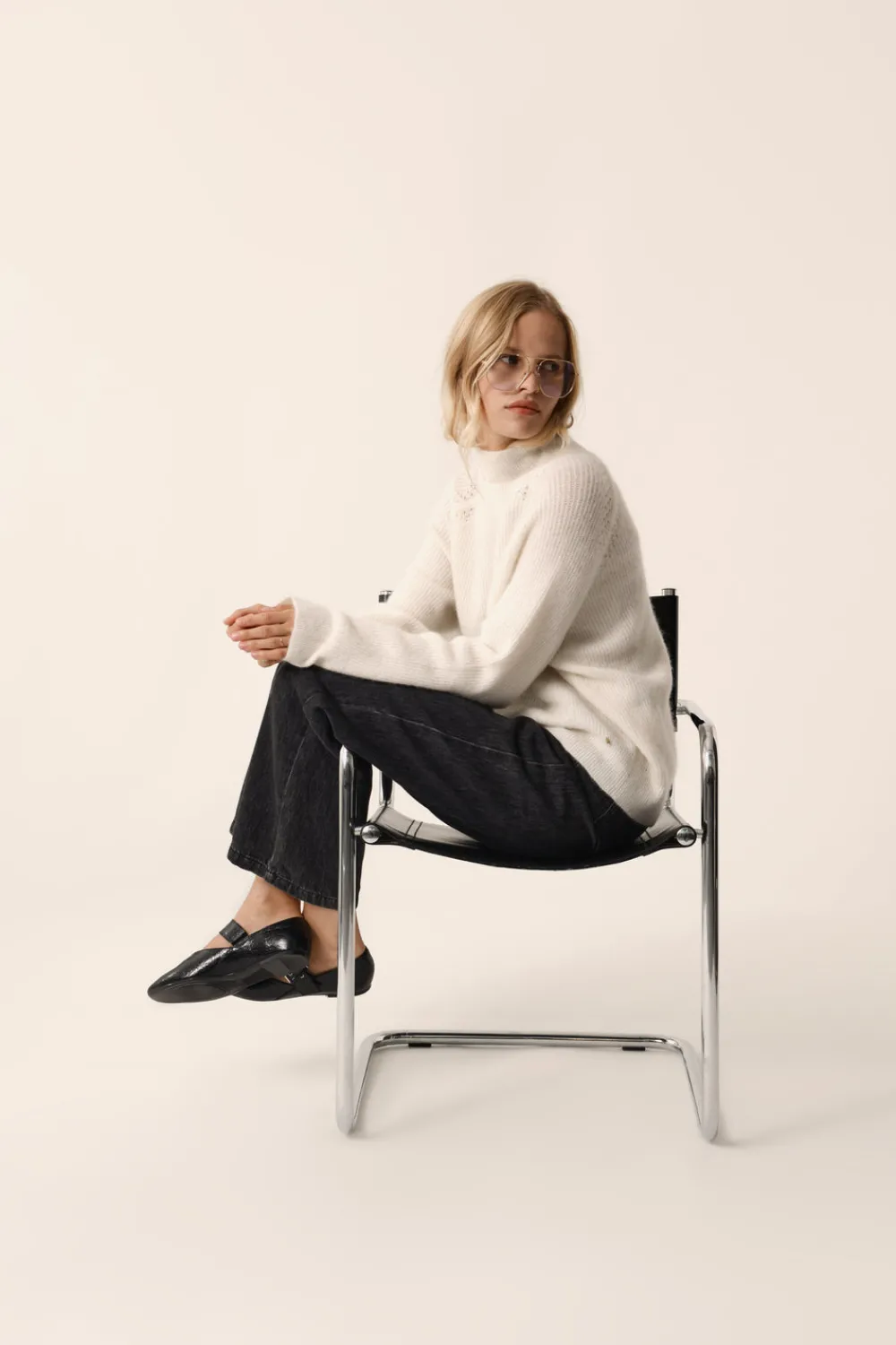 Avec une jupe, un jean ou un pantalon habillé, le pull oversize Bergamote s’adapte à tous les looks. En alpaga superfine, col montant et manches raglan, vous aimerez le retrouver saison après saison.• Pull oversize col montant• Manches raglan• Emmanchures à détails ajourés• Finitions en bord-côte• Pull réalisé dans un nouveau fil italien du groupe « Mousseux » composé d’Alpaga Superfine du Pérou pour sa texture moelleuse et chaude et de polyamide recyclé ajoutant de l’élasticité• Coloris Crème : un blanc crème• Modèle dessiné à Paris par notre styliste• Fabriqué en Italie• Longueur : 53 cm pour une taille 1• Jolien mesure 1m77 et porte une taille 1• Conseil style : portez-le avec la jupe longue Elimo et des bottes pour une silhouette citadine