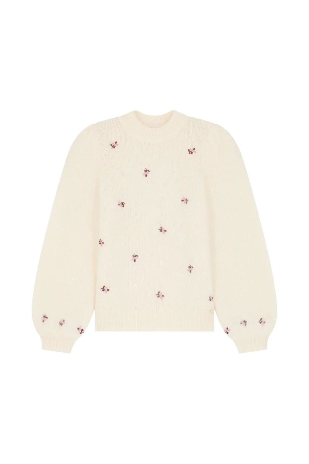 Classique du vestiaire d’hiver réinterprété dans une version bohème chic, le pull en laine Bouda est animé de fleur délicatement brodées. Coupe droite, col montant et manches bouffantes pour un volume structuré, vous aimerez le porter tout au long de la saison. • Pull col montant en laine • Manches bouffantes • Plis ronds aux épaules • Fleurs brodées devant et sur manches • Finitions en bord-côte • Pull réalisé dans un nouveau fil du groupe « Pompom » principalement composé de laine de Nouvelle Zélande et kid mohair d’Afrique du Sud. Il est très agréable au toucher et se caractérise par une forte isolation thermique grâce à son épaisseur. • Coloris Crème : un blanc crème • Modèle dessiné à Paris par notre styliste • Longueur : 57 cm pour une taille 1 • Jolien mesure 1m76 et porte une taille 1 • Conseil style : portez-le avec la jupe longue Siara et des bottes pour une silhouette dans l’air du temps