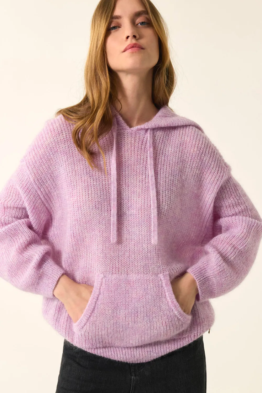 Esprit sweat de sport revisité avec sa capuche et sa poche kangourou, le pull Bulotte prend la forme d’un hoodie. Porté sous un manteau oversize avec votre jean préféré, sa maille en kid mohair ultra douce sera parfaite pour le plein hiver. • Pull hoodie oversize • Emmanchures décalées • Capuche avec cordon de serrage • Poche plaquée devant • Finitions en bord-côte • Pull femme réalisé en fil du nouveau groupe « Mohair » composé de Kid Mohair d’Afrique du Sud et laine d’Australie. Fil certifié RMS & RWS et garanti sans Mulesing. • Coloris Pétale chiné : un rose chiné • Modèle dessiné à Paris par notre styliste • Longueur : 56 cm pour une taille 1 • Iolanta mesure 1m71 et porte une taille 1 • Conseil style : portez-le avec le jean Louisette et le manteau oversize Yvie