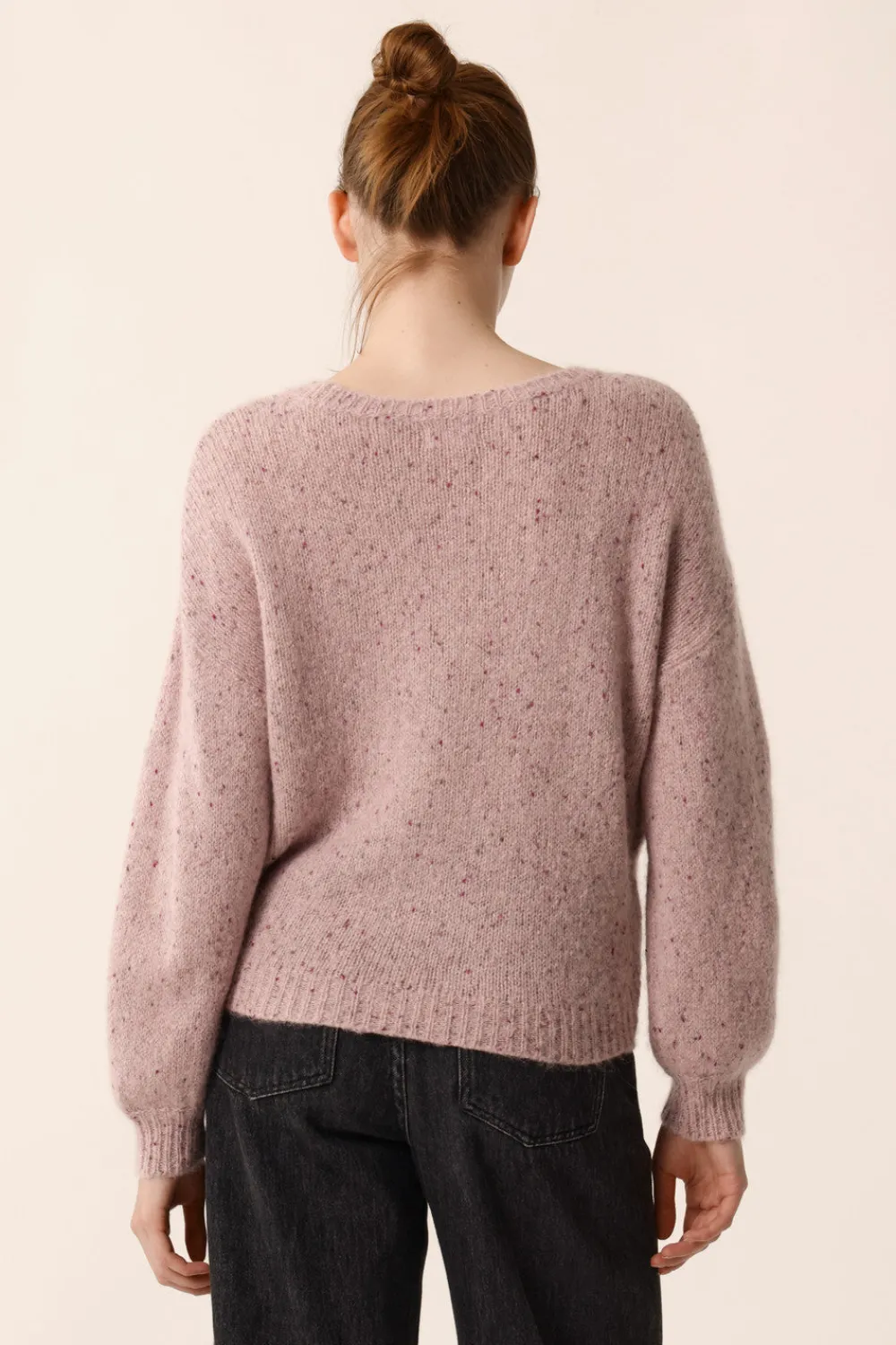 Esprit vintage avec son petit effet moucheté, le pull Cesar séduit par son élégante simplicité. Porté seul avec un pantalon en velours ou par dessus une chemise vous aimerez son mélange d’alpaga et laine. • Pull coupe classique col rond • Emmanchures décalées • Finitions en bord-côte • Pull réalisé dans un nouveau fil italien du groupe « Boutonné » principalement composé d’Alpaga originaire du Pérou et de laine lui confèrant un aspect duveteux et très doux au porter. • Coloris Quartz : un rose clair moucheté • Modèle dessiné à Paris par notre styliste • Fabriqué en Italie • Longueur : 61 cm pour une taille 1 • Josie mesre 1m77 et porte une taille 1 • Conseil style : portez-le avec le jean mom taille haute Louisetta