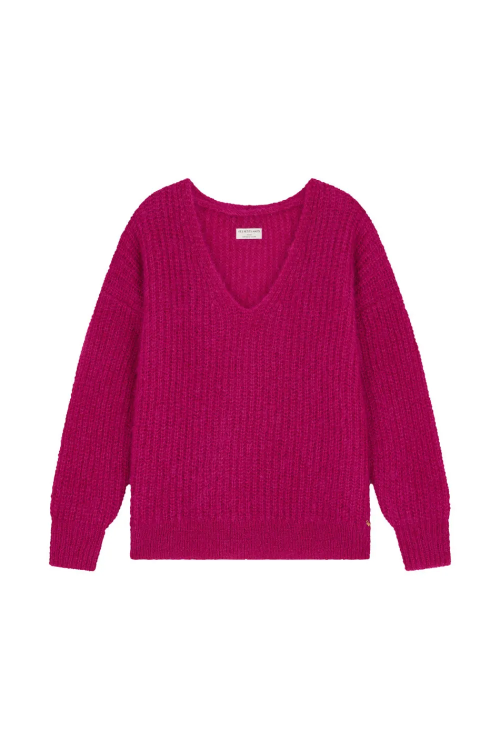 Petit basique chic facile à coordonner à une jupe ou un pantalon, le pull col V Charlie opte pour une palette de coloris naturels très en vogue cette saison. En kid mohair doux et cosy, sa maille côtelée et son encolure mettront en valeur votre silhouette. • Pull droit côtelé • Encolure V • Finitions en bord-côte • Pull réalisé dans un nouveau fil italien du groupe « Fluffy » en kid mohair d’Afrique du Sud et laine mérinos extrafine d’Australie certifié RMS & RWS. Fil au toucher très doux, gonflant et duveteux. • Coloris Lupin : un rose fuchsia • Modèle dessiné à Paris par notre styliste • Longueur : 60 cm pour une taille 1 • Emilie mesure 1m77 et porte une taille 1 • Conseil style : portez-le rentré dans le jean Lulu avec un manteau long pour une silhouette cosy et citadine