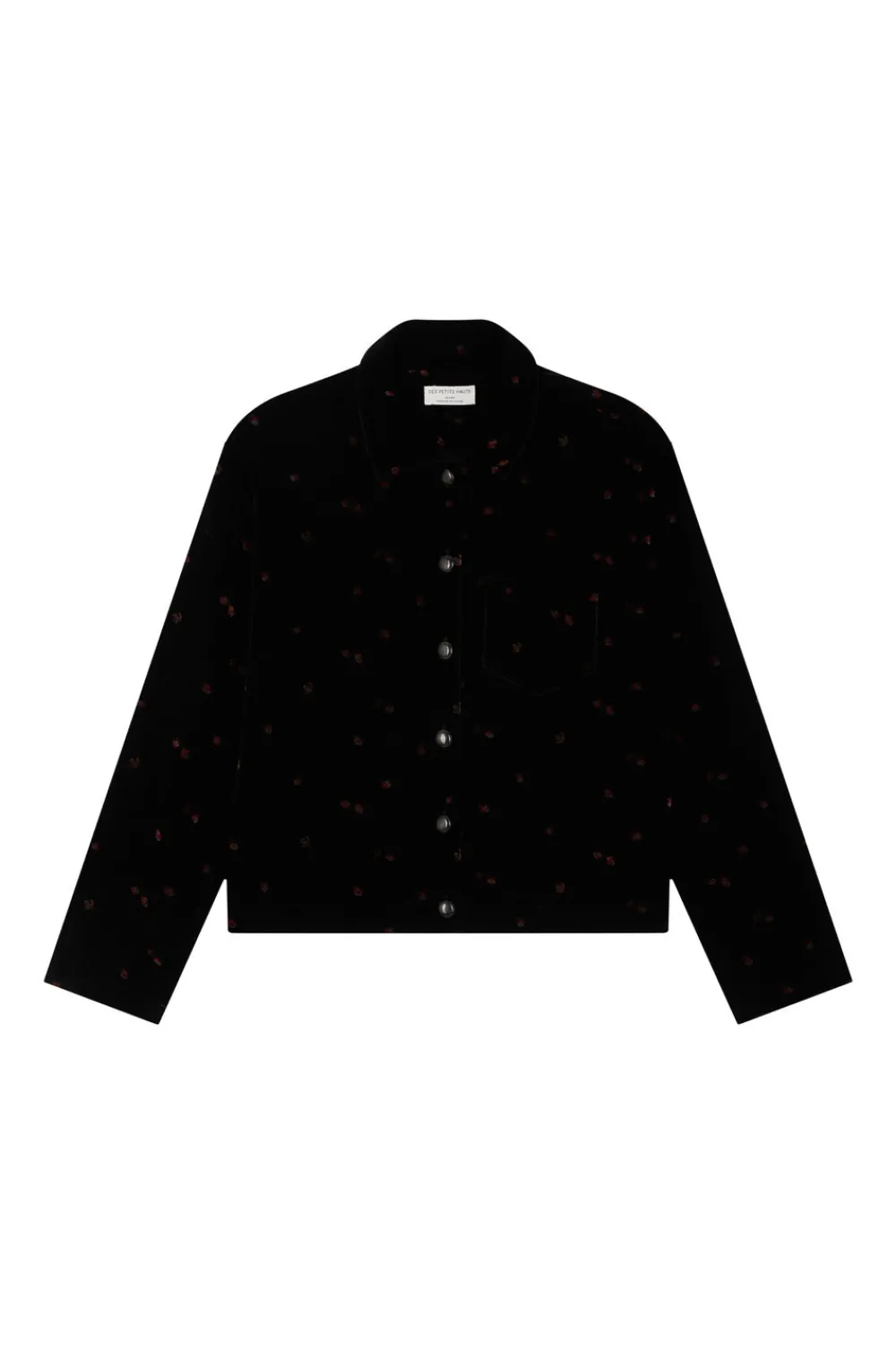 Taillée comme un petit blouson de mi-saison, la veste Timéo marque le retour de la tendance velours. Coupe droite, col classique et boutonnée, portez-la sur un pull fin ou un t-shirt. • Veste courte en velours • Col classique • Ouverture boutonnée • Modèle sans doublure • Imprimé exclusif Des Petits Hauts « Bloom » dessinant un motif floral rétro fin et subtil • Modèle dessiné à Paris par notre styliste • Longueur : 57 cm pour une taille 1 • Jolien mesure 1m76 et porte une taille 1 • Conseil style : portez-la sur un t-shirt uni avec le pantalon coordonné Timisti ou le jean Louela